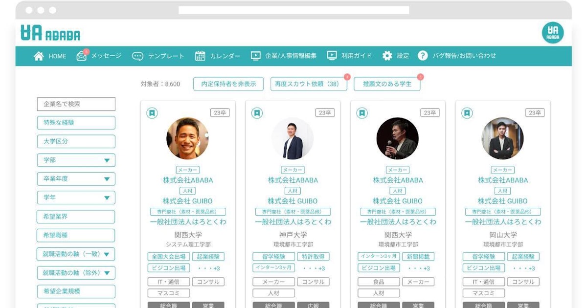 ABABA(アババ)はスカウト型の就活サイトのひとつです。